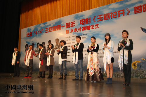 中國臺灣網(wǎng)4月13日北京消息 在青海玉樹“4·14”大地震一周年之際,以玉樹抗震救災(zāi)為背景,表現(xiàn)藏漢民族團(tuán)結(jié)一心共同抗震救災(zāi)的電影《玉樹花開》13日在全國政協(xié)禮堂舉行首映式。中共青海省委常委、宣傳部長吉狄馬加出席首映式并發(fā)表講話。該片導(dǎo)演段連民攜該片主創(chuàng)人員參加了首映式。