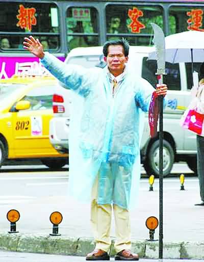 2008年,柯賜海拿著關(guān)公刀登記參加2008年臺灣地區(qū)領(lǐng)導(dǎo)人選舉,一時成為島內(nèi)輿論的焦點。資料圖