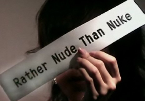“寧裸不核”的英文表達。圖片截于《寧裸不核》影片