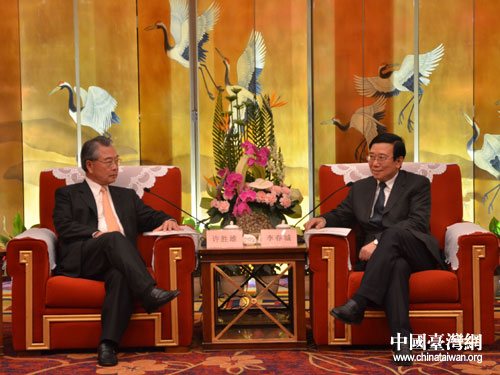 中國臺灣網(wǎng)4月14日成都消息 日前,以海峽兩岸經(jīng)貿(mào)文化交流協(xié)會會長、財(cái)團(tuán)法人海峽交流基金會副董事長、臺灣金仁寶集團(tuán)董事長許勝雄先生為團(tuán)長的海峽兩岸經(jīng)貿(mào)文化交流協(xié)會參訪團(tuán)一行參訪了成都。4月13日,中共四川省委常委、成都市委書記李春城,成都市長葛紅林在成都會見了參訪團(tuán)全體成員。雙方就蓉臺電子信息產(chǎn)業(yè)發(fā)展的最新情況、仁寶成都項(xiàng)目建設(shè)進(jìn)展情況等廣泛交換了意見。
