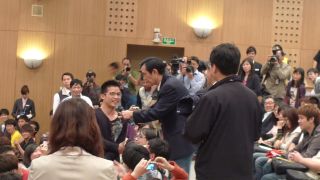 據(jù)報(bào)道,馬英九魅力難檔,進(jìn)入臺灣科技大學(xué)演講廳時(shí),受到學(xué)生熱烈鼓掌歡迎。臺科大設(shè)計(jì)得獎(jiǎng)學(xué)生李佩雯和葉銘泓一開始便邀請邀請馬英九一起玩30秒圓圈繪圖游戲,李佩雯表示,要挖出馬英九的腦礦。