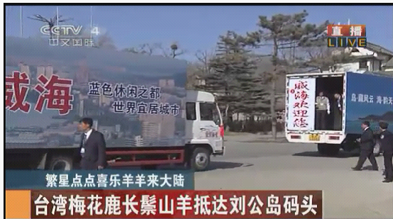 運(yùn)送車輛抵達(dá)劉公島。圖片來源:中央電視臺