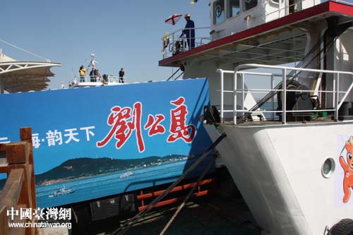 旅游船上遠(yuǎn)眺劉公島。(中國(guó)臺(tái)灣網(wǎng) 劉海偉 攝)