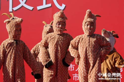 威海市鯨園小學(xué)的小朋友在迎接儀式上表演。(中國臺(tái)灣網(wǎng) 劉海偉攝)