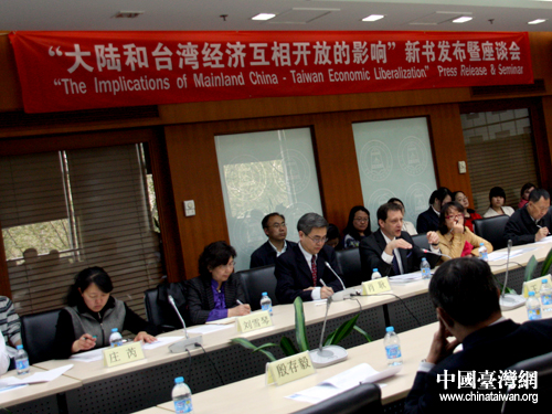 《大陸和臺灣經(jīng)濟互相開放的影響》新書發(fā)布暨座談會20日在北京舉行。(中國臺灣網(wǎng) 高斯斯 攝)