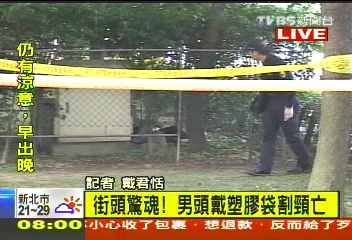 中國臺(tái)灣網(wǎng)4月21日消息 據(jù)臺(tái)灣TVBS電視臺(tái)報(bào)道,臺(tái)北市鬧區(qū)街頭今(21)日早上傳出離奇死亡案件。在臺(tái)北市敦化南路遠(yuǎn)企大樓前方的安全島,發(fā)現(xiàn)有一名男子倒臥在電箱旁,頭上戴有塑料袋,脖子上有明顯割痕。