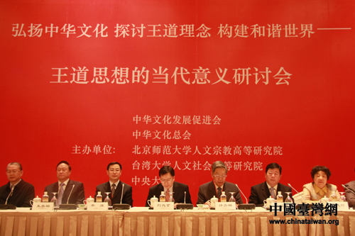 辛旗在開幕式上說(shuō),“王道”作為中華傳統(tǒng)文化的一部分,自古以來(lái)就對(duì)推動(dòng)中華各民族融合、發(fā)展和統(tǒng)一,對(duì)維護(hù)中華文化圈的繁榮穩(wěn)定都起到了不可估量的作用。在今天海峽兩岸中國(guó)人步入現(xiàn)代化進(jìn)程中,如何創(chuàng)造性地轉(zhuǎn)化、吸納這些思想,使之在中華民族繁榮崛起,以及在全球化的國(guó)際社會(huì)中發(fā)揮更大作用,值得深入研究探索。