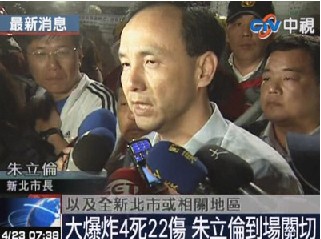 大爆炸4死22傷,新北市長(zhǎng)朱立倫到場(chǎng)關(guān)切。圖片來(lái)源:臺(tái)灣“今日新聞網(wǎng)”