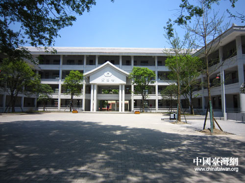臺灣慈濟(jì)援建的四川雅安市名山縣第一中學(xué)教學(xué)樓,上面有圣嚴(yán)法師的題詞。(中國臺灣網(wǎng) 朱毅 攝)