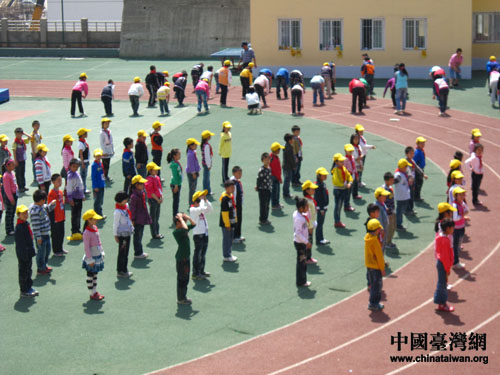 漢源富林鎮(zhèn)第一小學(xué)的孩子們正在上體育課。(中國臺灣網(wǎng) 朱毅 攝)