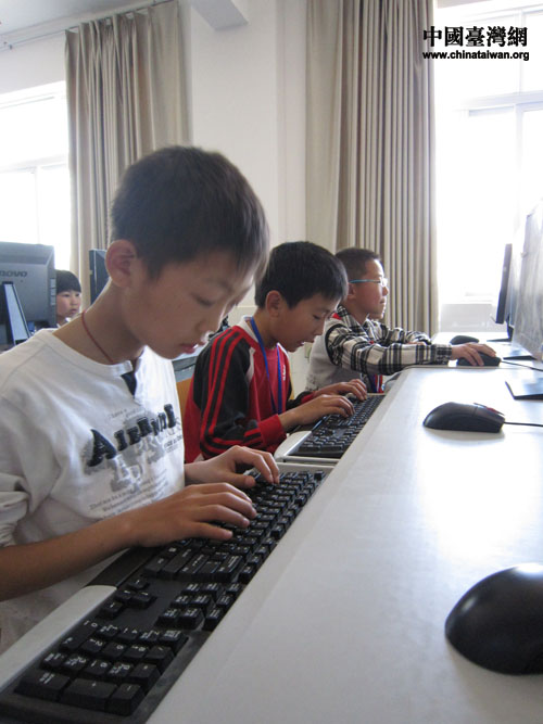 富林鎮(zhèn)第一小學(xué)學(xué)生多功能教室、音樂室、美術(shù)室、團隊活動室等全都配齊,圖為富林鎮(zhèn)一小學(xué)生正在上計算機課。(中國臺灣網(wǎng) 朱毅 攝)
