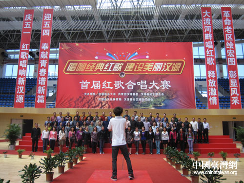 體育館里面,紅色歌曲排練熱火朝天,漢源人民用豪壯的歌聲表達(dá)對美麗新生活的向往。(中國臺灣網(wǎng) 朱毅 攝)