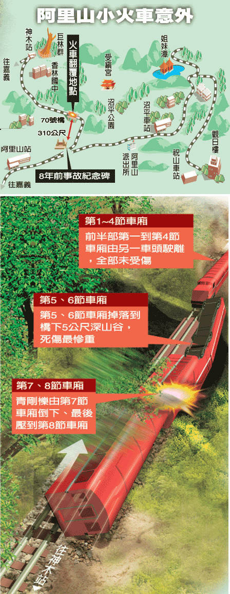 阿里山小火車事故示意圖。圖片來源:臺灣《聯(lián)合報》
