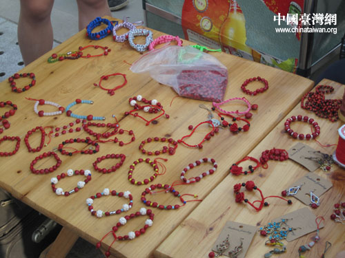 琳瑯滿目的紅豆飾品。(中國臺灣網 朱毅 攝)
