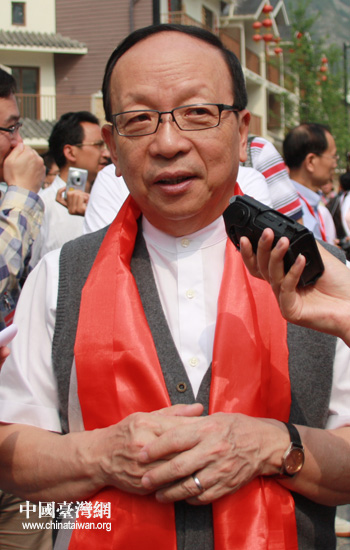 今日上午,前來參加兩岸經(jīng)貿(mào)文化論壇的百余臺灣嘉賓前往汶川映秀鎮(zhèn)、水磨鎮(zhèn)考察災(zāi)后重建情況。圖為國民黨副主席蔣孝嚴(yán)在參訪期間接受記者專訪。(中國臺灣網(wǎng) 高斯斯 攝)