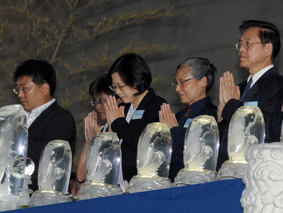 中國臺(tái)灣網(wǎng)5月8日消息 據(jù)臺(tái)灣“中央社”報(bào)道,臺(tái)灣慈濟(jì)基金會(huì)今(8)日舉辦浴佛大典,慶祝佛誕節(jié)、母親節(jié)和全球慈濟(jì)日。臺(tái)灣地區(qū)領(lǐng)導(dǎo)人馬英九、民進(jìn)黨主席蔡英文均出席浴佛典禮,但并未照面。