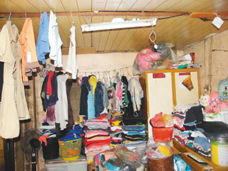 彭克勇夫婦與8個(gè)孩子住在不到十坪的房子里,堆滿孩子衣物。圖片來(lái)源:臺(tái)灣《聯(lián)合報(bào)》