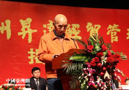 鄭州升達(dá)經(jīng)貿(mào)管理學(xué)院創(chuàng)始人、臺灣杰出教育家王廣亞在慶典儀式上致辭(圖片來源:河南省臺辦)