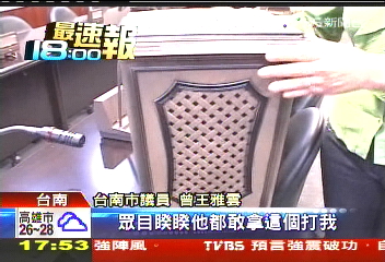 中國(guó)臺(tái)灣網(wǎng)5月12日消息 據(jù)臺(tái)灣TVBS電視臺(tái)報(bào)道,臺(tái)南市議會(huì)今(12)日爆發(fā)沖突。因?qū)κ懈傤A(yù)算的審查方式意見不合,無黨籍議員曾順良投擲垃圾筒砸傷民進(jìn)黨總召曾王雅云,這招致其它民進(jìn)黨議員的極大不滿,險(xiǎn)些群毆曾順良。