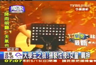 25歲的李姓嫌犯,是臺(tái)灣某科技大學(xué)的學(xué)生,曾參加大學(xué)歌唱比賽,彈吉展露才華。但令人沒想到的是,李姓大學(xué)生竟然涉嫌猥褻及性侵5名女童。
