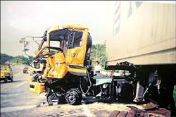 徐名峰駕駛的大貨車,從車禍現(xiàn)場可看出車毀嚴(yán)重程度。圖片來源:臺(tái)灣媒體