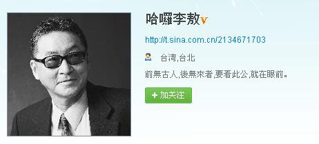 李敖17日在某大陸網(wǎng)站開(kāi)設(shè)微博,引發(fā)不小的轟動(dòng)。圖片截自李敖微博
