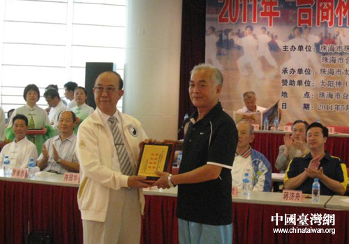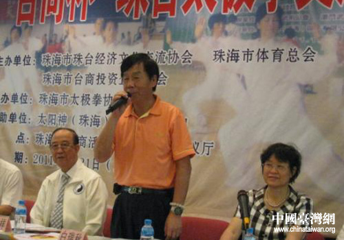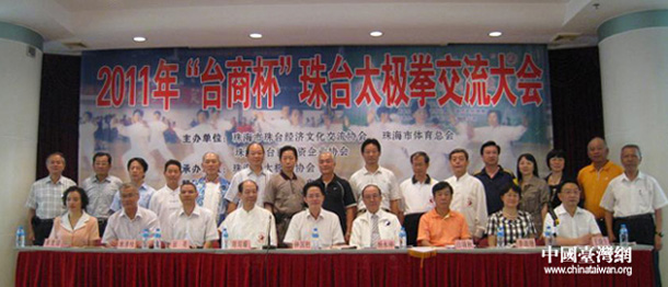 中國臺灣網(wǎng)5月24日廣州消息 日前,廣東省珠海市珠臺經(jīng)濟文化交流協(xié)會、珠海市體育總會、珠海市臺商投資企業(yè)協(xié)會主辦的2011“臺商杯”珠臺太極拳交流大會在珠海隆重開幕。廣東省海峽兩岸交流促進會駐會副會長白瑞秋、促進會秘書長李淑珊、廣東省市臺辦相關負責人、主辦單位領導、珠臺港澳太極拳界人士等300人出席了開幕式。