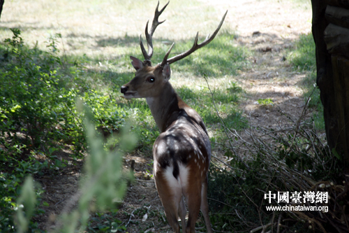 雄性梅花鹿“繁星”在室外場(chǎng)館。(中國(guó)臺(tái)灣網(wǎng) 劉海偉 攝)