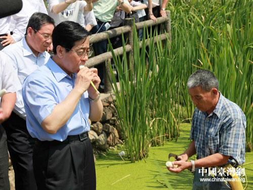 書記現(xiàn)場試吃(浙江臺辦 王健 攝)
