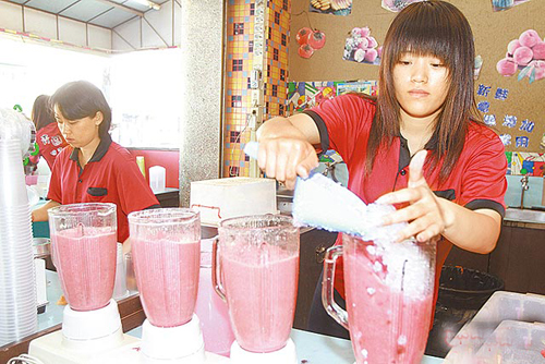臺南市一家現(xiàn)榨果汁店,4臺果汁機整天滿載。圖片來源:臺灣媒體