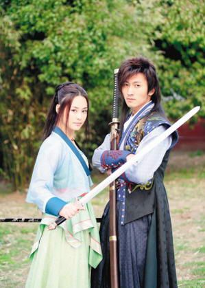 圖為謝霆鋒和阿嬌在《浣花洗劍錄》中的劇照。資料圖