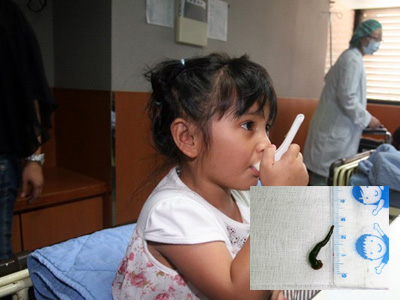 5歲田姓女童右鼻孔取出約3厘米長活水蛭。圖片來自網(wǎng)絡(luò)