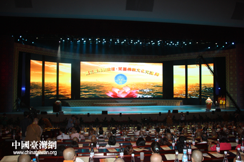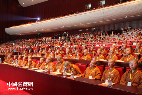 “第三屆海峽論壇·閩臺佛教文化交流活動周”9日晚間在福州開幕,閩臺兩地的諸山長老、大德,以及國家宗教局、福建省、福州市有關(guān)領(lǐng)導(dǎo),與兩岸千余名僧眾一同參加了當(dāng)晚舉行的開幕式。(中國臺灣網(wǎng) 楊麗 攝)