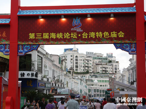 中國臺灣網(wǎng)6月11日廈門消息 備受關注的第三屆海峽論壇·臺灣特色廟會于10日在廈門中山路盛大開幕。廟會現(xiàn)場,68家臺灣夜市小吃業(yè)者展示了近200種美味小吃。展商們不僅帶來了琳瑯滿目的臺灣特色產品,也將目光瞄準了即將開放的大陸居民赴臺個人游市場,通過廟會現(xiàn)場推介臺灣。