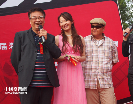 10日,第三屆海峽論壇的主要活動(dòng)之一,海峽影視展映展播周在廈門(mén)大學(xué)舉行首映式。圖為影視劇《船來(lái)船往》主創(chuàng)人員吳孟達(dá)等。(中國(guó)臺(tái)灣網(wǎng) 張瑞宸 攝)
