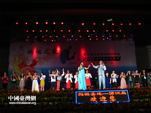 臺灣歌手彭立、李俊翰合唱《海上湄洲》。(中國臺灣網 馬迪 攝)