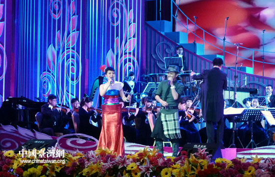 雷佳與臺灣歌手范逸臣演唱《那魯灣情歌》(中國臺灣網(wǎng) 李徽 攝)