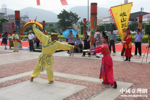 閩臺民俗表演,岐山跳鼓舞。(中國臺灣網(wǎng) 于斯文 攝)