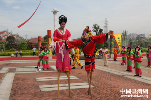 閩臺(tái)民俗表演,踩高蹺。(中國臺(tái)灣網(wǎng) 于斯文 攝)