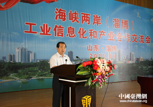 山東淄博市委常委、常務(wù)副市長(zhǎng)王頂岐主持會(huì)議并向與會(huì)者介紹淄博經(jīng)濟(jì)發(fā)展情況(圖片來源:淄博市臺(tái)辦)
