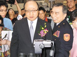 臺中市長胡志強(qiáng)昨天在市警察局長刁建生陪同下,參觀治安成果展示。圖片來源:臺灣《中國時報》