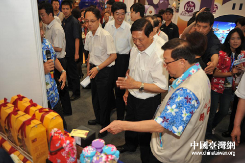 臺(tái)灣新竹縣縣長(zhǎng)邱鏡淳向北京市領(lǐng)導(dǎo)介紹臺(tái)灣旅游產(chǎn)品(圖片來源:北京市臺(tái)辦)