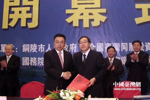 全國臺企聯(lián)與銅陵市政府簽署三項(xiàng)重要協(xié)議。(中國臺灣網(wǎng) 馬迪 攝)