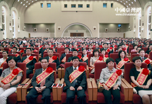 中國(guó)臺(tái)灣網(wǎng)6月27日北京消息 對(duì)臺(tái)工作先進(jìn)集體、先進(jìn)個(gè)人表彰大會(huì)今天上午在北京人民大會(huì)堂舉行。中共中央政治局常委、全國(guó)政協(xié)主席賈慶林出席會(huì)議,會(huì)見對(duì)臺(tái)工作先進(jìn)集體和先進(jìn)個(gè)人代表并頒獎(jiǎng)。國(guó)務(wù)委員戴秉國(guó)出席會(huì)議并作重要講話。中共中央臺(tái)灣工作辦公室、國(guó)務(wù)院臺(tái)灣事務(wù)辦公室主任王毅主持會(huì)議并宣讀表彰決定。圖為大會(huì)現(xiàn)場(chǎng)。(中國(guó)臺(tái)灣網(wǎng) 田云鵬 攝)