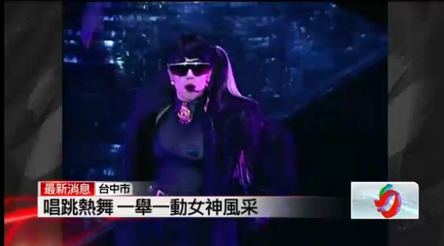 女神卡卡在臺(tái)中圓滿劇場(chǎng),胸貼透視裝開(kāi)唱。圖片來(lái)自視頻截圖