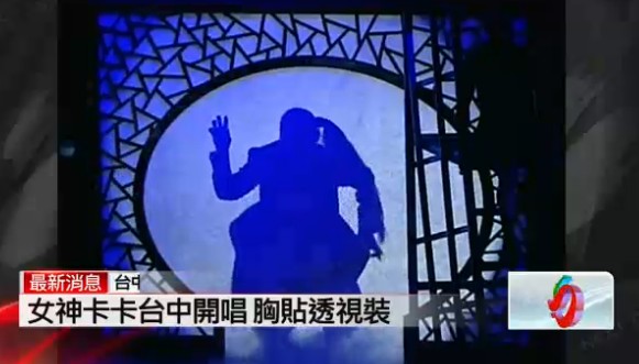 Lady Gaga在臺(tái)中圓滿劇場(chǎng),胸貼透視裝開唱。圖片來自視頻截圖