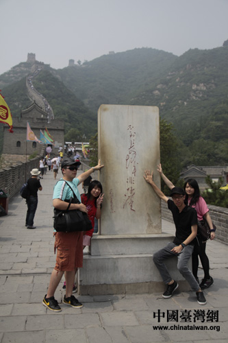 首義之旅的兩岸大學(xué)生在毛澤東主席題寫的“不上長城非好漢”碑前合影(中國臺灣網(wǎng) 趙婧 攝) 第1頁第2頁第3頁第4頁第5頁