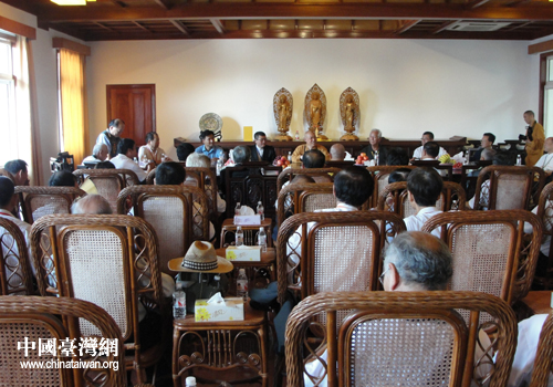 中國臺灣網(wǎng)7月8日舟山消息 日前,臺灣最大道教聯(lián)誼會寺廟金蘭會一行130余人在會長王增榮的帶領(lǐng)下來到浙江普陀山交流參訪。普陀山佛教協(xié)會會長道慈大和尚接待了參訪團(tuán)一行,雙方舉行了兩岸宗教文化交流座談。