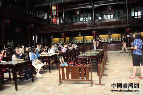 兩岸學(xué)生參觀天津廣東會館。(中國臺灣網(wǎng) 宿靜 攝)