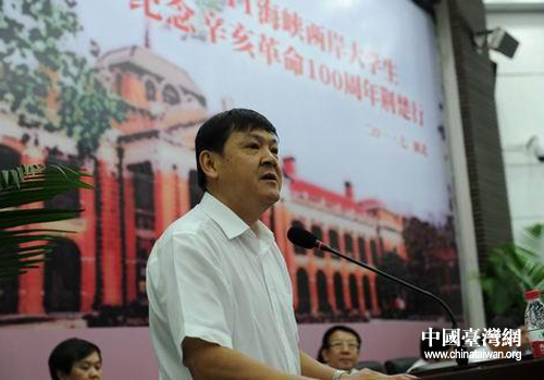 武漢大學(xué)校長(zhǎng)李曉紅講話(湖北省臺(tái)辦 陸勝 攝)